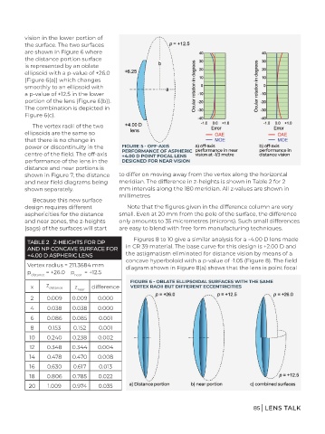 TABLE 2 Z-HEIGHTS FOR DP Figures 8 to 10 give a similar analysis for a -4.00 D lens made